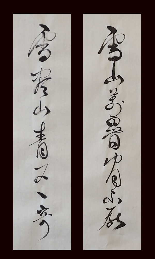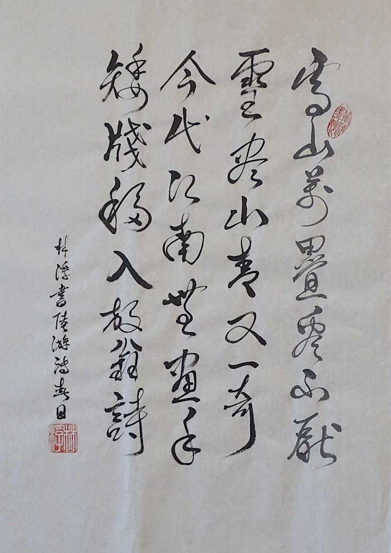 les 2 premiers vers du poème de lu yu calligraphiés en xing cao © corinne leforestier 2026