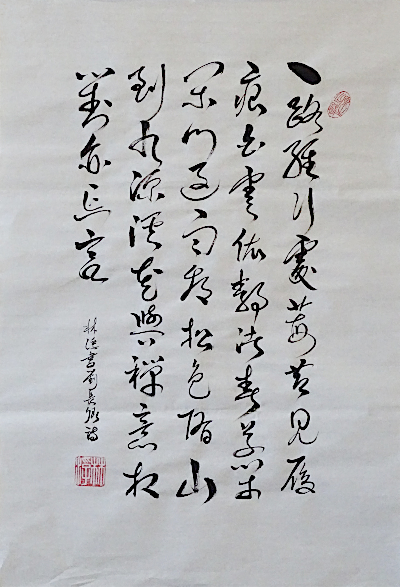 poème de Liu Zhangqing calligraphié en xingcao © corinne leforestier 2026